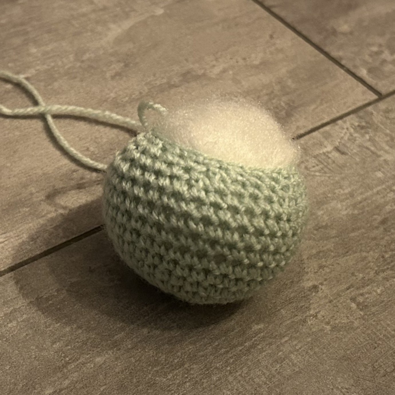 Am Anfang sowie am Ende Wolle lassen (um es später leicht annähen zu können)
