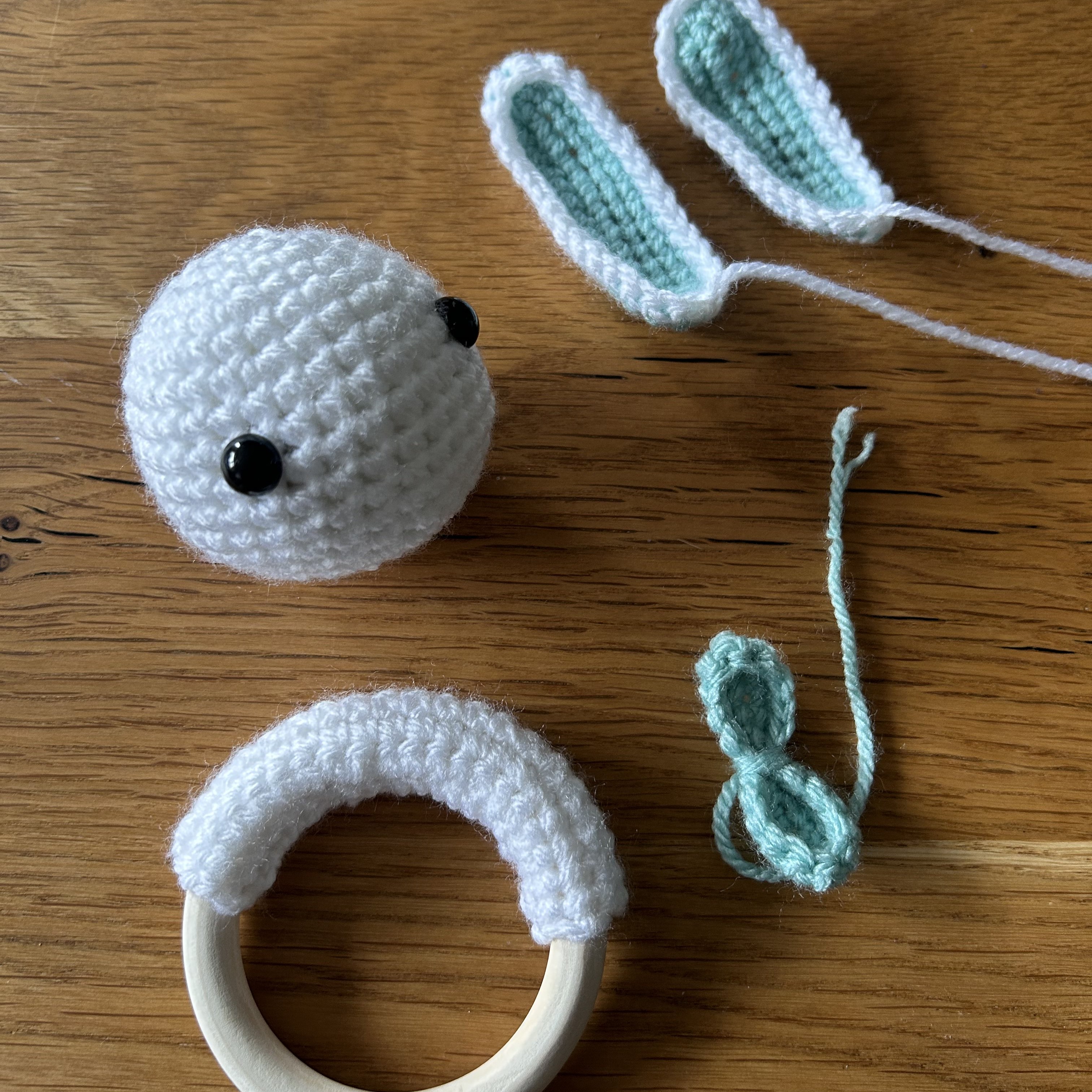 WICHTIG: Falls du die Rassel verschenkst, sag unbedingt Bescheid, dass Babys die Augen verschlucken könnten. Um das zu umgehen, kannst du die Augen auch einfach aufsticken. Das sieht auch sehr schön aus und ist viel sicherer.