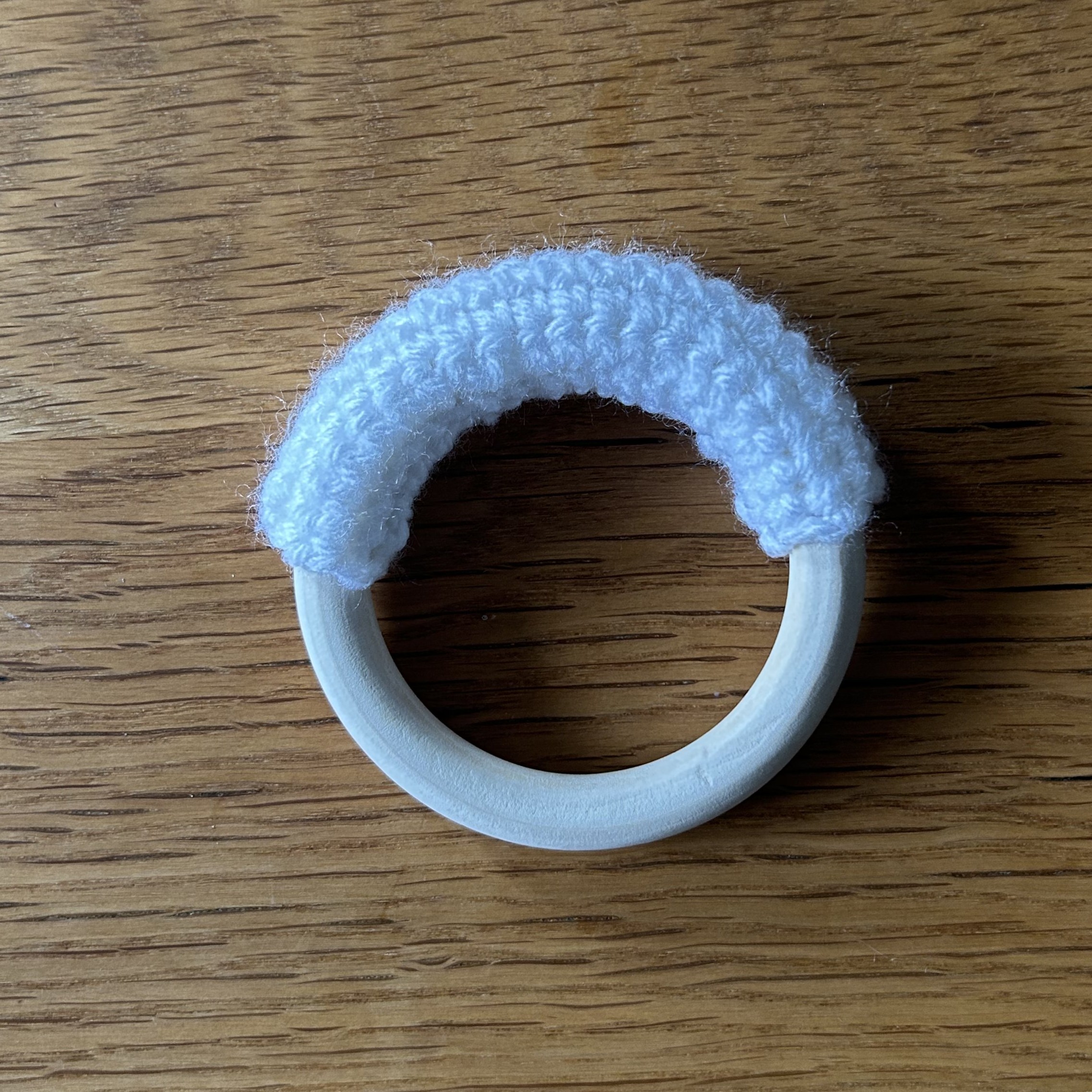 immer denselben Garn und die selbe Nadelstärke zu verwenden. Das ist wichtig, damit die Rassel auch wirklich gut aussieht und nicht zu groß oder